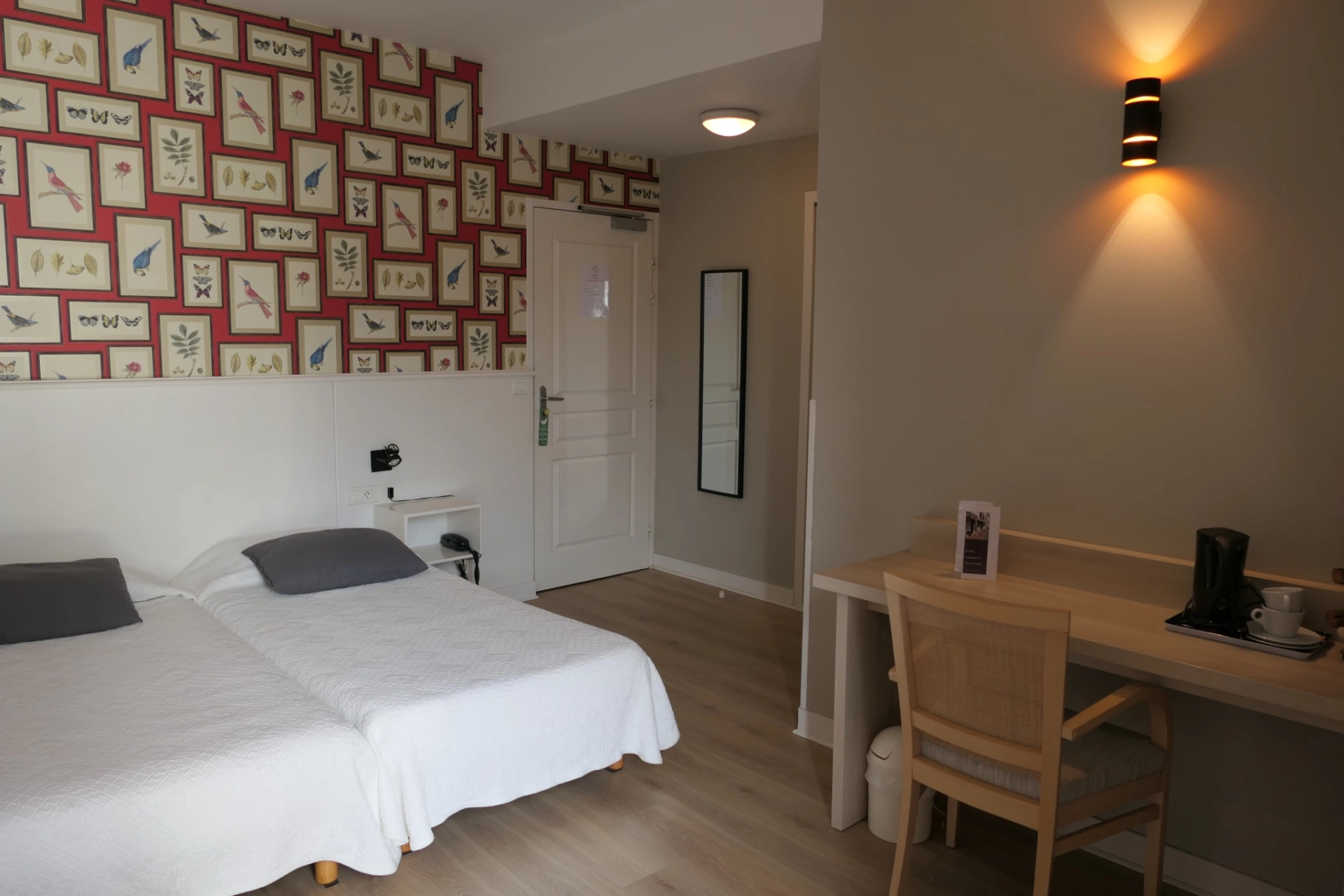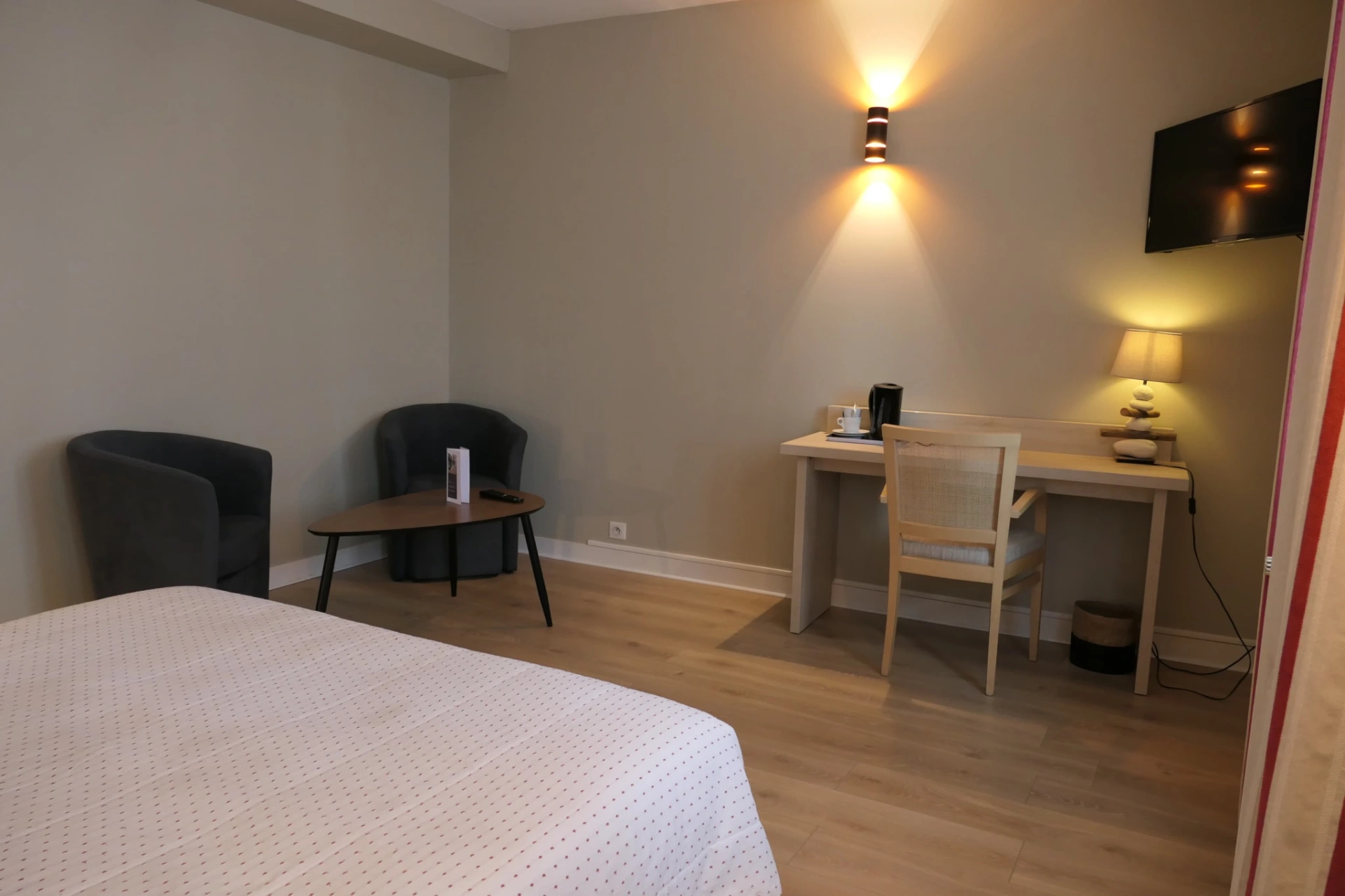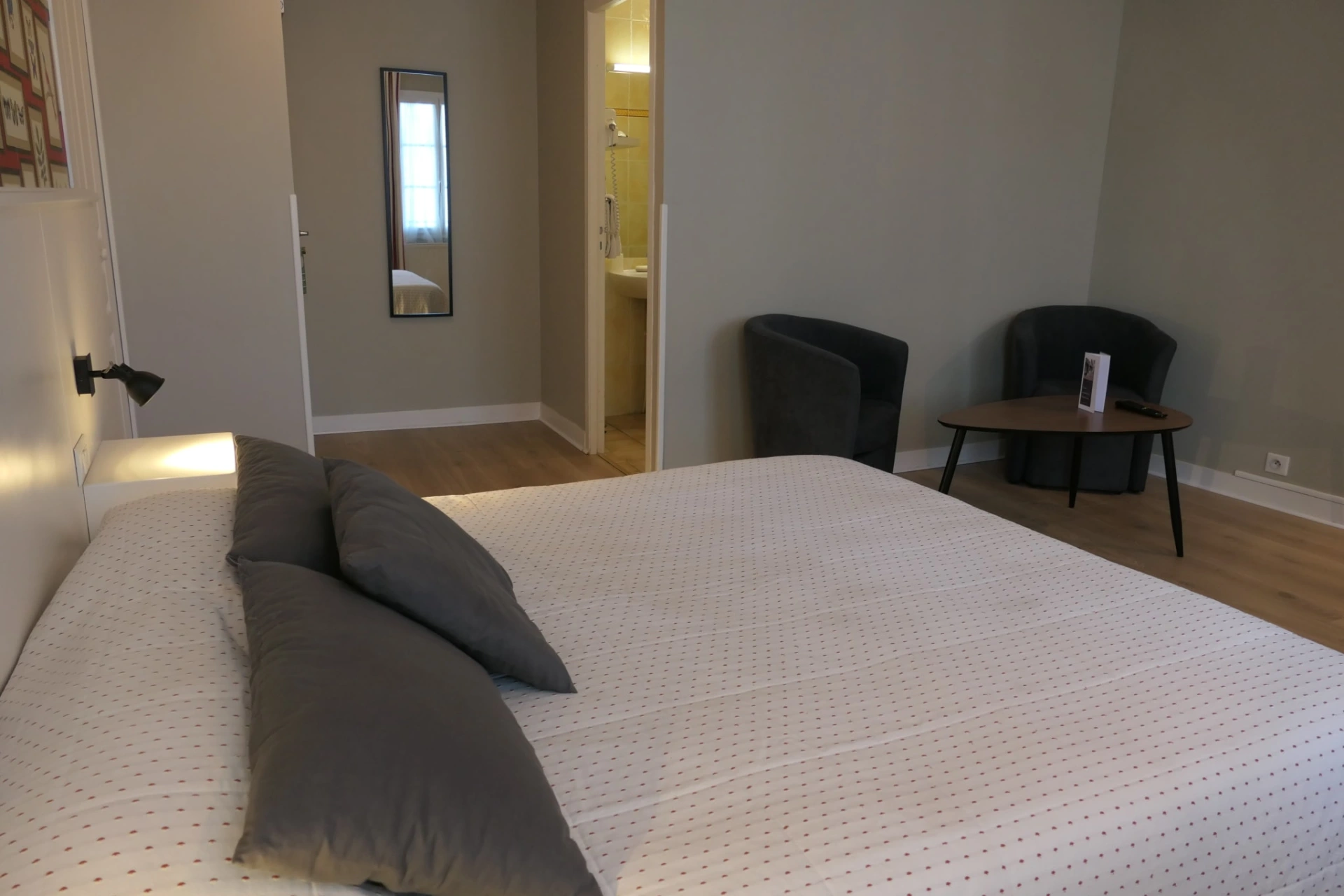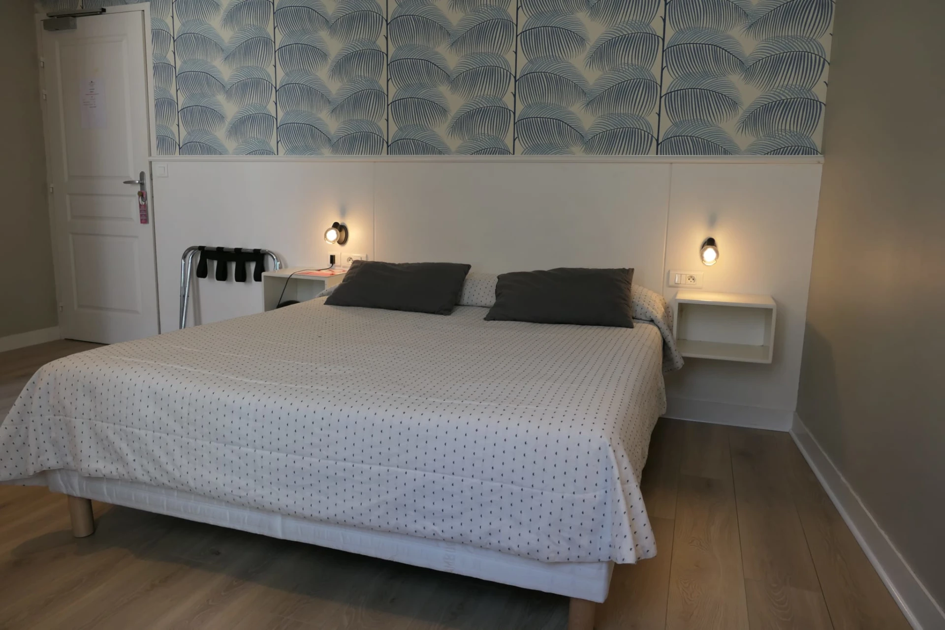 Spacieuses, lumineuses et parfaitement insonorisées, les chambres offrent tout le confort nécessaire : télévision écran plat, téléphone, connexion Wi-Fi, bouilloire, miroir, etc. Chaque chambre dispose également d’une salle de bains privative avec douche, lavabo, WC et sèche-cheveux.